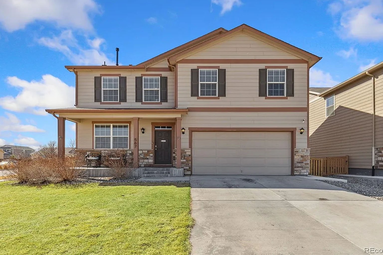 Welcome to this exceptional 4-bedroom, 2.5-bath home featuring a dedicated office, a versatile loft, and a spacious 2-car garage. Nestled in the highly sought-after Silver Peaks neighborhood, this 2-story home goes beyond the standard Melody Homes 2,300 sq. ft. model—offering an additional 250 sq. ft. of functional living space, including an extra bedroom and a main-floor office. Situated on a generous corner lot, this home provides both privacy and convenience, with easy access to I-76 for a seamless commute.